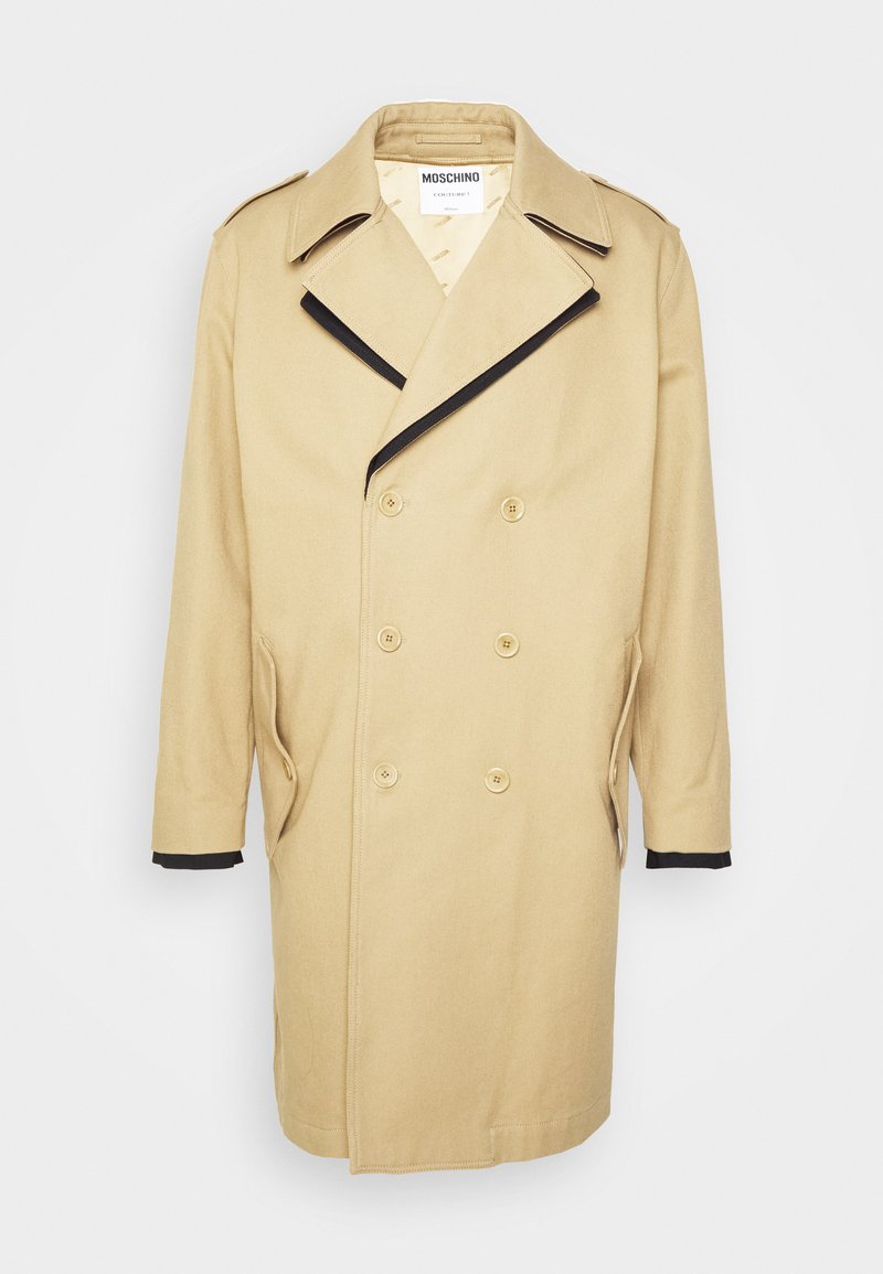 Stay warm and stylish this autumn/winter season with Moschino's Classic Coat for Men. This elegant beige coat effortlessly combines casual and formal elements, making it versatile for any occasion. Crafted with high-quality materials, this coat is a must-have for any man's wardrobe. Embrace timeless style with the Moschino Classic Coat.