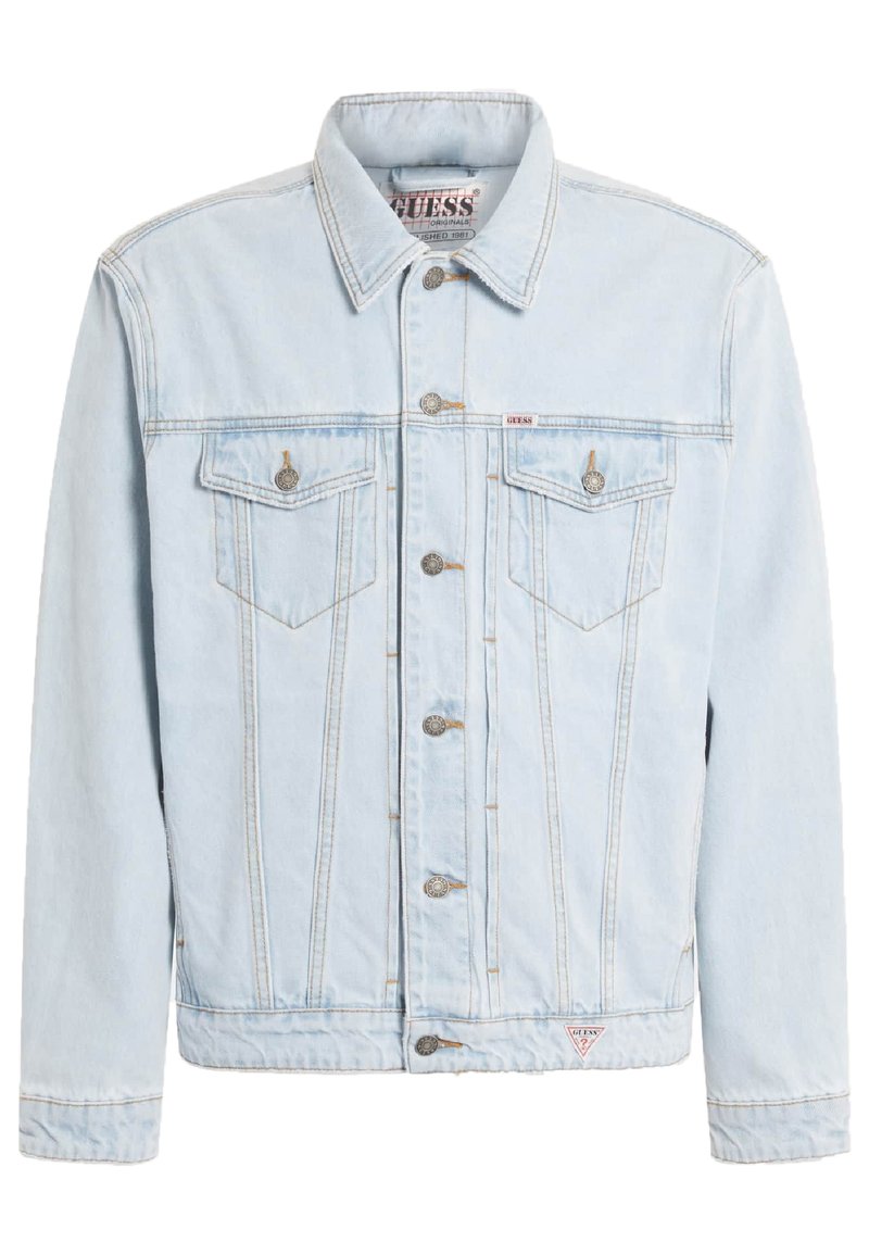 Stay stylish and comfortable this Autumn/Winter with the Guess Casual Man's Blue Denim Jacket. This trendy piece is perfect for layering in the cooler months, adding a touch of casual sophistication to any outfit. The classic blue color makes it versatile and easy to mix and match with your wardrobe. Stay fashion-forward with this must-have piece from Guess.