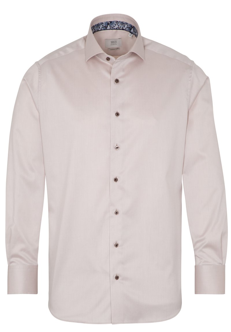Stay effortlessly stylish this Spring/Summer with the Eterna Casual/Elegant Beige Shirt for Men. Made for the modern man, this versatile piece exudes sophistication in a subtle beige hue. Perfect for any occasion, whether it's a casual outing or a more formal event. Elevate your wardrobe with this timeless and chic essential.