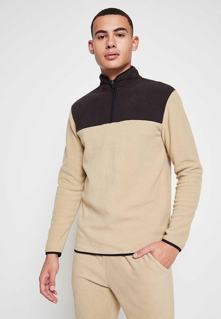 Stay cozy and stylish in the Only & Sons Casual Men's Beige Hoodie. This soft and warm fleece hoodie is perfect for the Autumn/Winter season. With its neutral beige color, it's easy to layer with any outfit for a laid-back yet trendy look. Add the "felpa in pile" to your wardrobe for ultimate comfort and style.