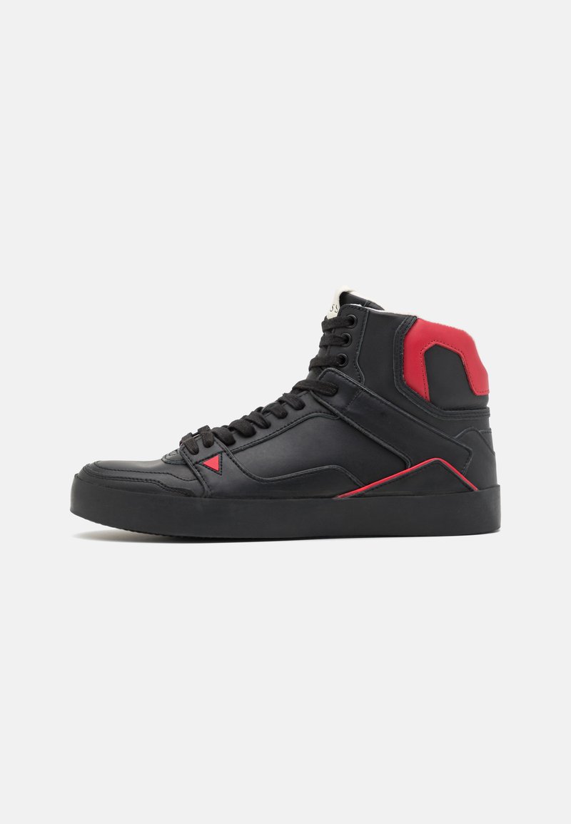 Elevate your casual look with these high-top sneakers from Guess. Perfect for the Autumn/Winter season, they feature a sporty design in sleek black. Stay stylish and comfortable on the go with these versatile shoes for men. Perfect for pairing with jeans or joggers.
