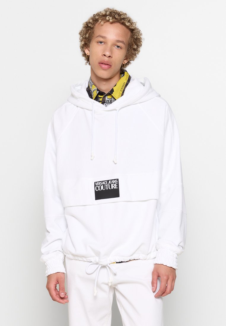Stay stylish and comfortable this Autumn/Winter season with the Versace Jeans Couture Casual Hoodie for Men in crisp White. This hoodie features a relaxed fit and iconic branding, perfect for everyday wear. Stay warm and on-trend with this essential wardrobe piece.