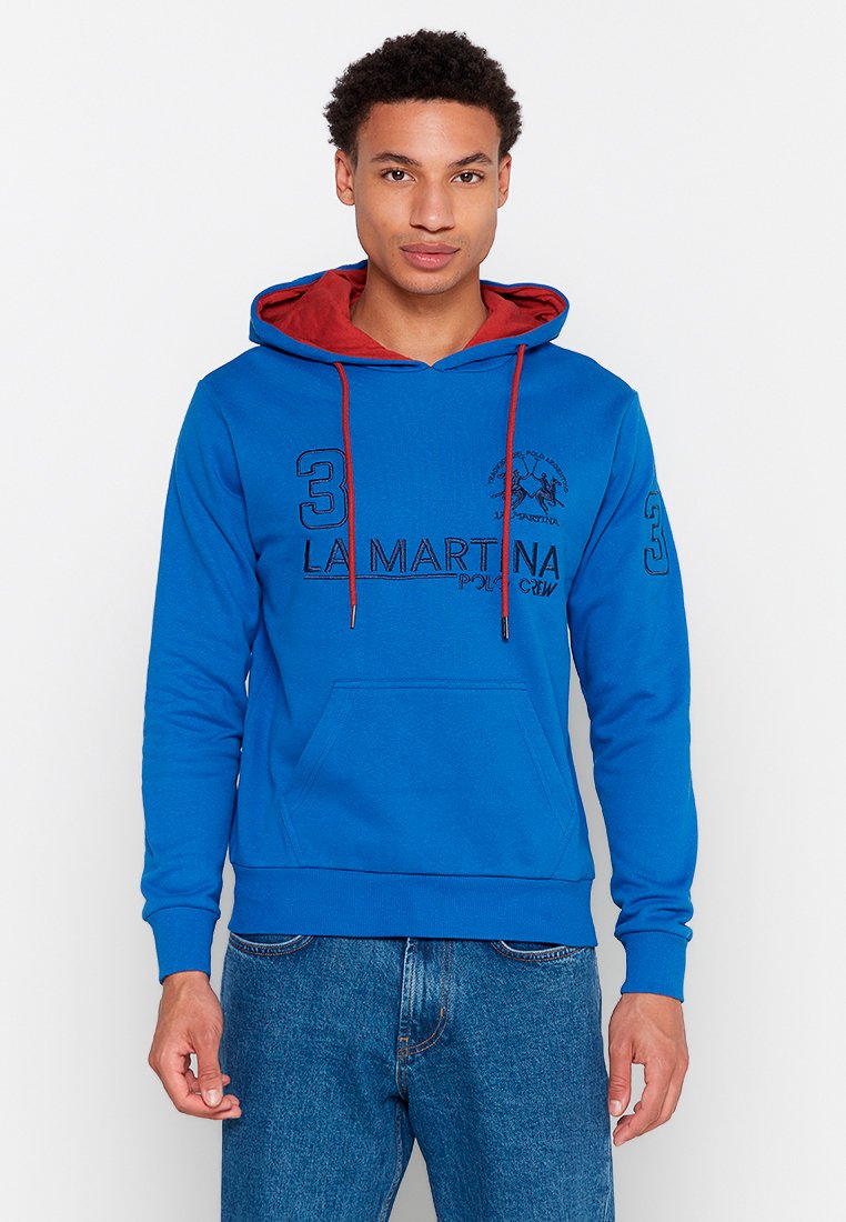 Stay cozy and stylish with this LA MARTINA Casual Man Hoodie in a trendy Blue color. Perfect for the Autumn/Winter season, this hoodie is the ideal choice for a laid-back, yet fashionable look. Crafted with high-quality materials and featuring a comfortable hood, this hoodie is a must-have for any man with a casual sense of style. Add this felpa con cappuccio to your wardrobe for an effortless cool vibe.