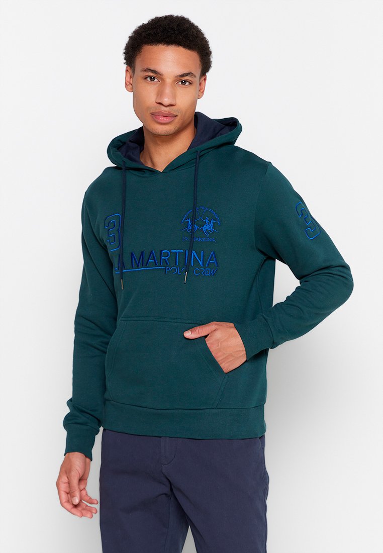 Stay cozy and stylish this Autumn/Winter season with LA MARTINA's Casual style Men's Hoodie in a versatile Green color. This hoodie is perfect for layering and adding a pop of color to any outfit. Made with quality materials, the felpa con cappuccio is a must-have for any fashion-forward man's wardrobe. Embrace comfort and style with this classic piece from LA MARTINA.