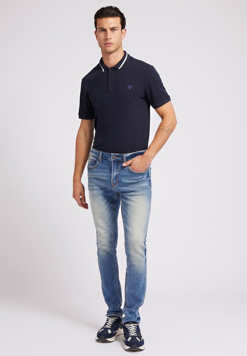 Stay stylish and comfortable this Autumn/Winter season with these Casual Slim Fit Jeans for Men from Guess. In a sleek blue color, these pants are perfect for everyday wear. Whether you're running errands or meeting friends for a casual outing, these jeans are the perfect choice. Add a touch of sophistication to your wardrobe with these versatile and trendy pants.