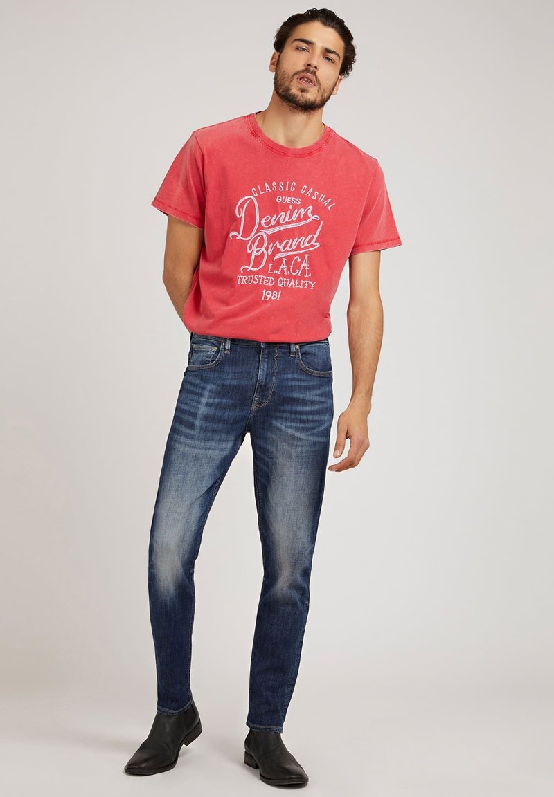 Stay stylish and comfortable this Autumn/Winter season with these Casual Slim Fit Jeans for Men from Guess. In a sleek blue color, these pants are perfect for everyday wear. Whether you're running errands or meeting friends for a casual outing, these jeans are the perfect choice. Add a touch of sophistication to your wardrobe with these versatile and trendy pants.