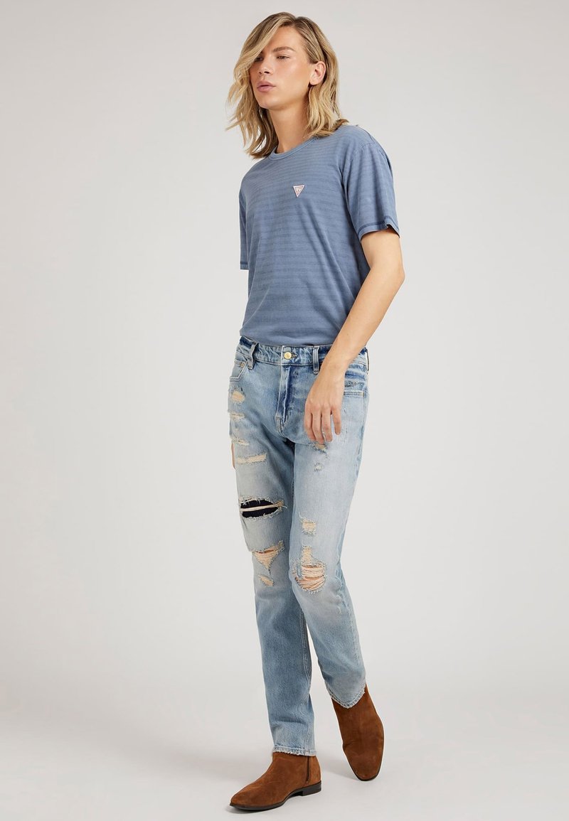 Stay stylish and comfortable this Autumn/Winter season with these Casual Slim Fit Jeans for Men from Guess. In a sleek blue color, these pants are perfect for everyday wear. Whether you're running errands or meeting friends for a casual outing, these jeans are the perfect choice. Add a touch of sophistication to your wardrobe with these versatile and trendy pants.
