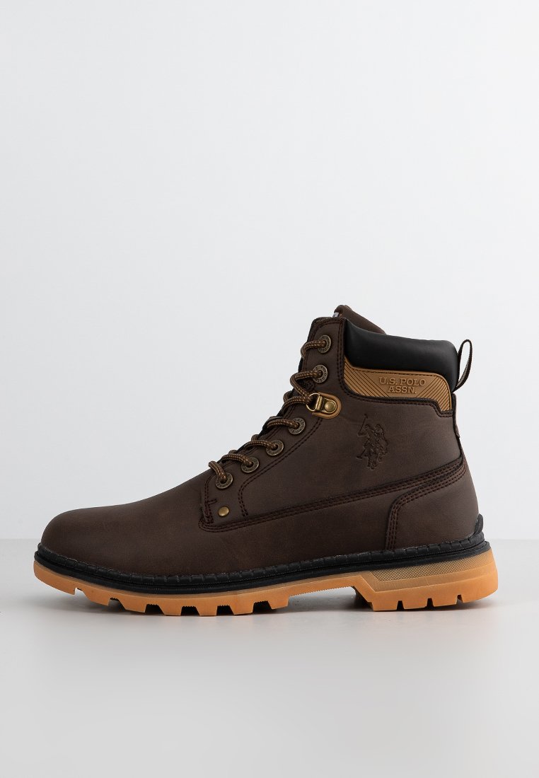 Stay stylish and comfortable this Autumn/Winter season with the Casual Boots for Men from the renowned brand U.S. Polo Assn. These lace-up ankle boots are perfect for adding a touch of sophistication to any outfit. Crafted in a versatile brown hue, these boots are a must-have for any man's wardrobe. Upgrade your shoe collection with these classic and timeless boots.
