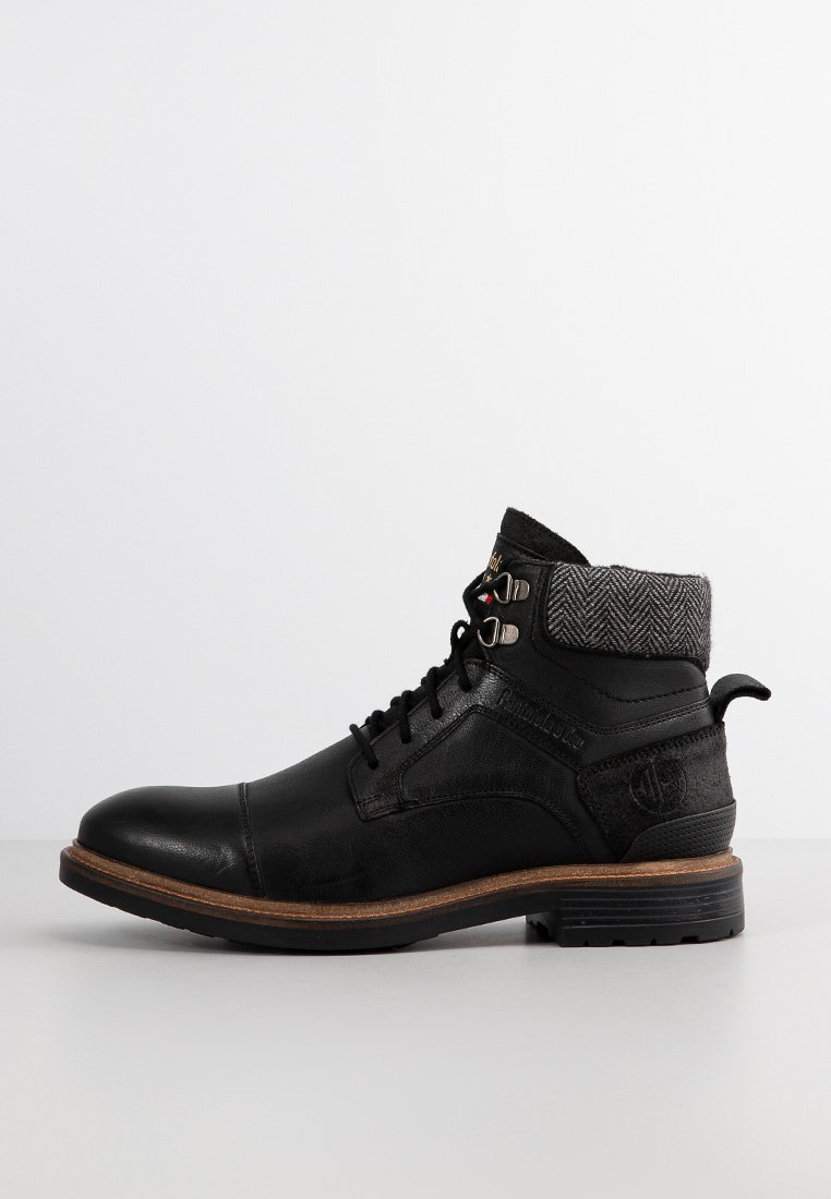 Elevate your casual fall and winter wardrobe with these lace-up boots from Pantofola D'Oro. Crafted in sleek black leather, these stylish boots are perfect for everyday wear. Stay comfortable and on-trend with this versatile footwear option. Upgrade your seasonal style with these modern and finely crafted boots.