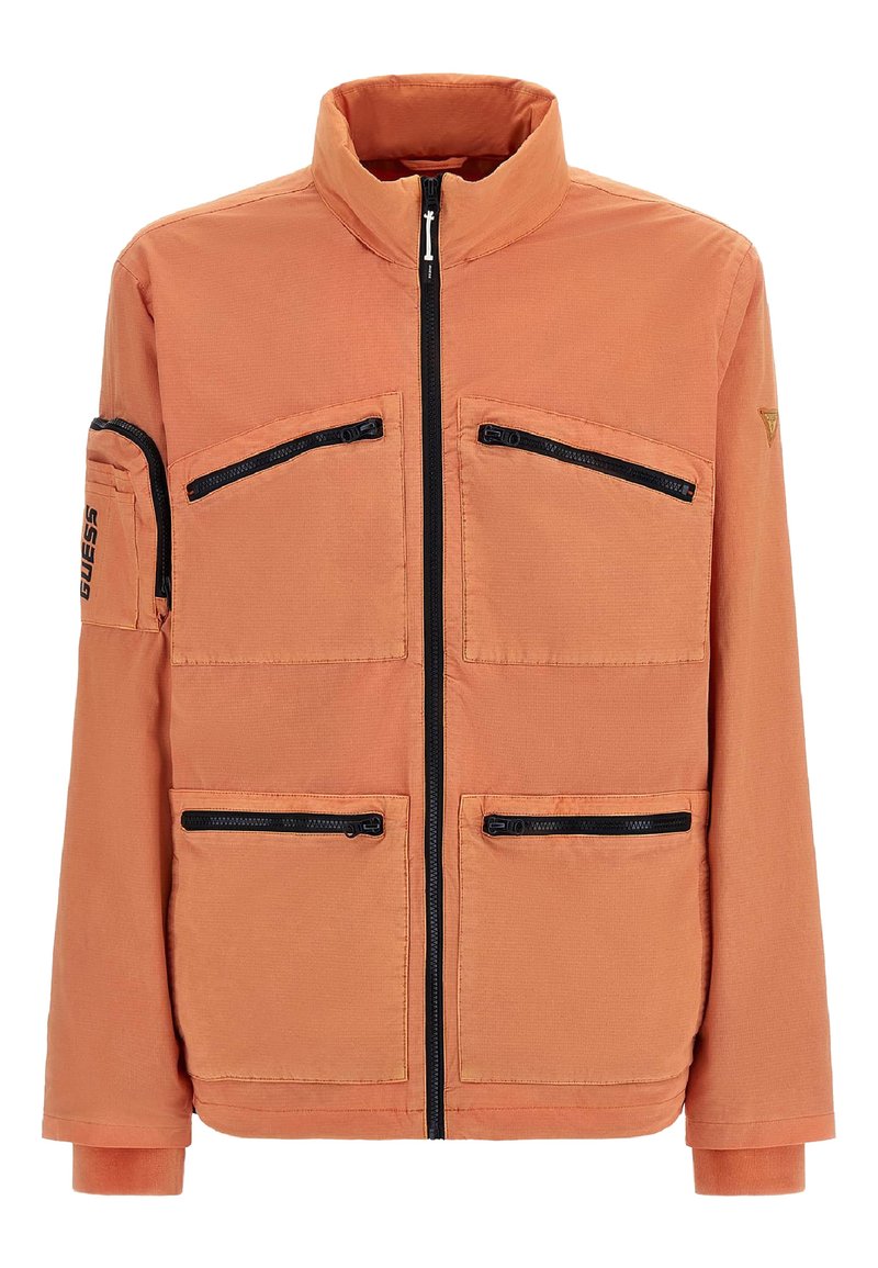 Stay warm and stylish this Autumn/Winter with the Guess Lightweight Jacket for Men in vibrant orange. Perfect for casual outings, this jacket features a sleek design and comfortable fit. Ideal for layering over your favorite sweaters and hoodies, it's a must-have addition to your winter wardrobe. Stand out in the crowd in this trendy orange jacket from Guess.