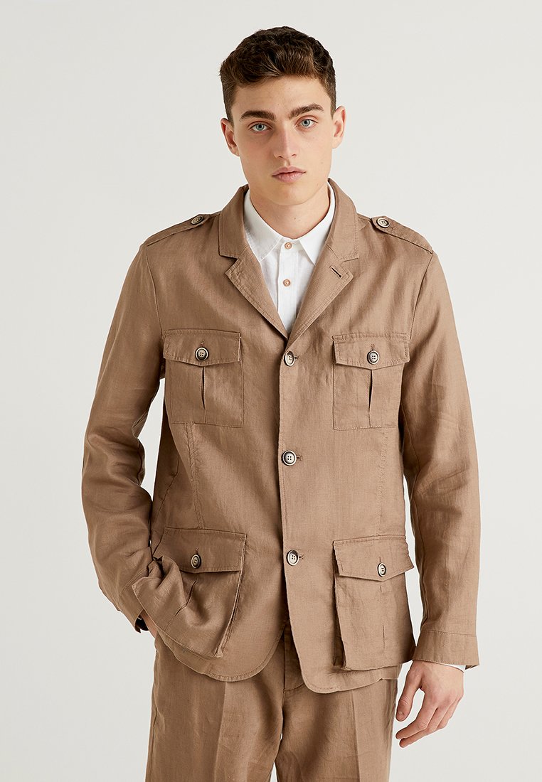 Stay cozy and stylish this Autumn/Winter season with the United Colors of Benetton Casual Jacket for Men. This lightweight beige jacket is perfect for adding a touch of sophistication to any outfit. Ideal for casual outings or gatherings with friends, this jacket is a must-have for any man of style. Stay warm and fashionable with the United Colors of Benetton Casual Jacket.