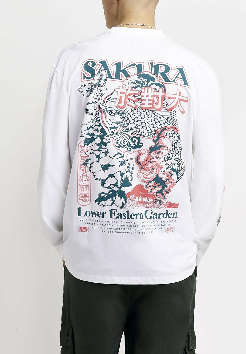 Add a touch of sophistication to your Spring/Summer wardrobe with this River Island Men's White Long Sleeve T-shirt. Effortlessly blending casual and elegant style, this versatile piece is perfect for any occasion. Crafted with a comfortable fabric, this classic white tee is a must-have for every man of style. Upgrade your look with this timeless wardrobe essential.