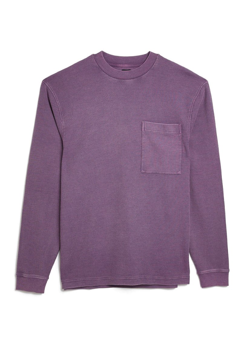 Elevate your casual look with this stylish long sleeve t-shirt from River Island. In a stunning violet hue, this versatile piece is perfect for the Spring/Summer season. Effortlessly blending casual and elegant styles, it is a must-have addition to any man's wardrobe. Stay cool and stylish with this versatile top.
