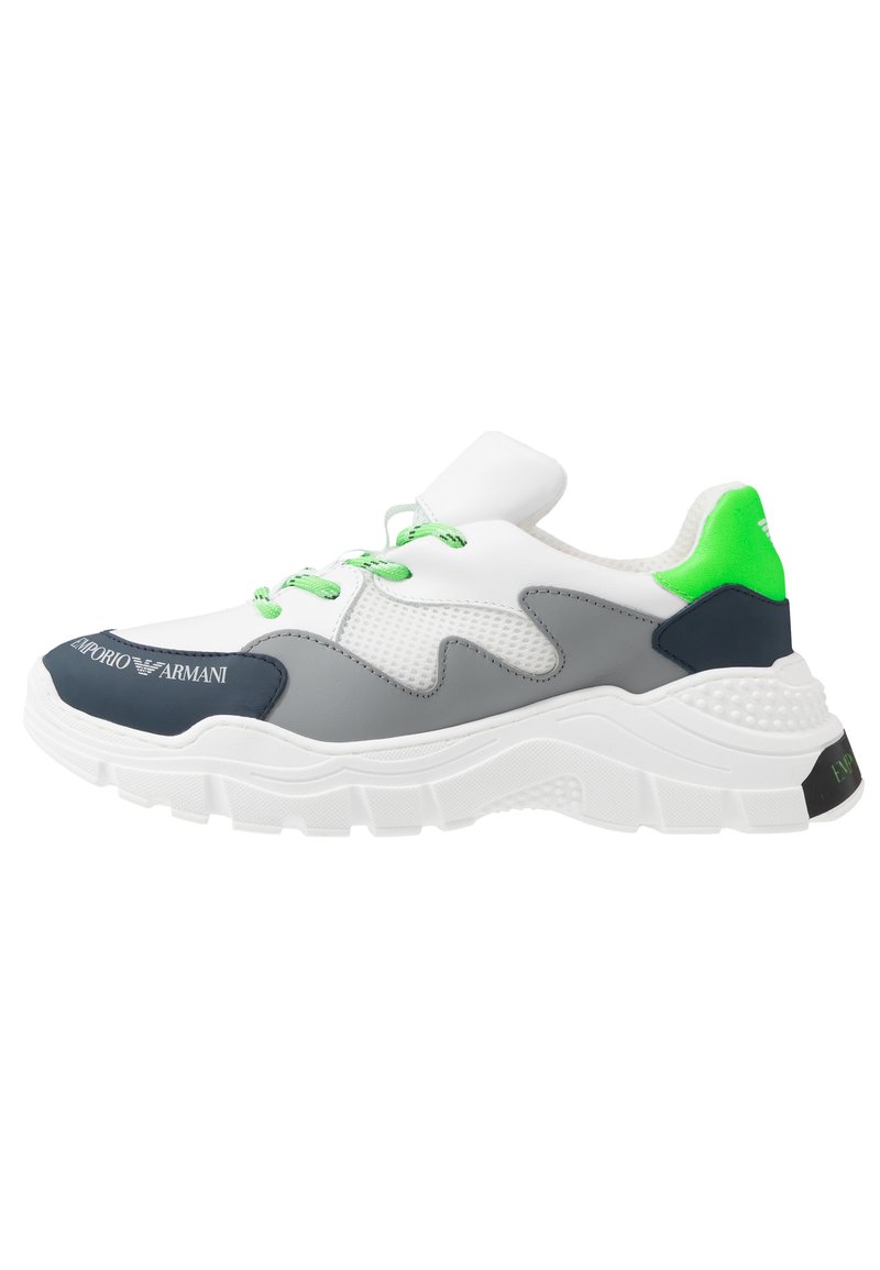 Stay stylish and comfortable this Autumn/Winter season with these white Emporio Armani Sportive/Casual sneakers. Perfect for everyday wear, these low-top sneakers are the ideal choice for the modern man on the go. Made from high-quality materials, they effortlessly blend fashion and function. Upgrade your footwear collection with these versatile and trendy Emporio Armani sneakers.