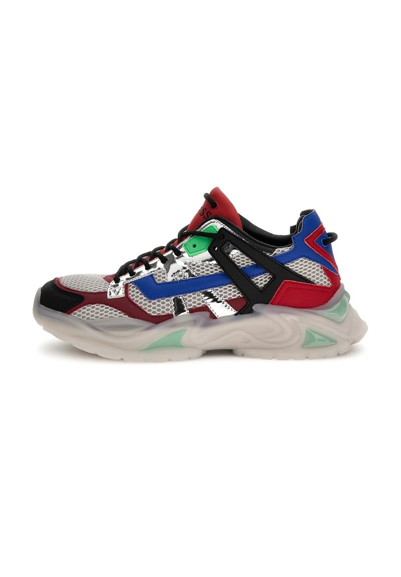 Stay stylish and comfortable this Autumn/Winter season with Guess's Sportive/Casual sneakers in Multi color. These low-top sneakers are perfect for any casual outfit, whether you're running errands or hanging out with friends. With a versatile design, these shoes are a must-have for any man looking to upgrade their footwear collection. Add a pop of color to your wardrobe with these trendy Guess sneakers.