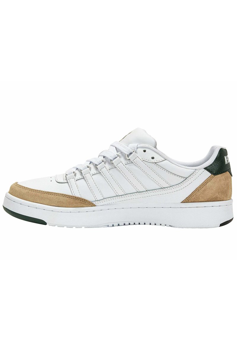 Stay stylish and comfortable this Autumn/Winter season with these sporty-casual K-SWISS low top sneakers in classic white. Perfect for everyday wear, these shoes offer a sleek design with a touch of athletic flair. Step out in confidence and add a versatile staple to your footwear collection. Experience the perfect blend of fashion and function with these K-SWISS sneakers.