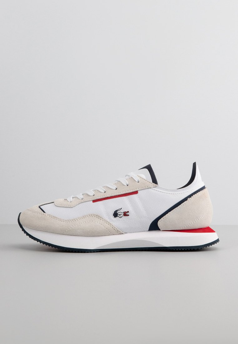 Stay stylish and comfortable this Autumn/Winter season with these Lacoste Sport low-top sneakers in crisp white. Perfect for a sporty yet casual look, these shoes are a versatile addition to any man's wardrobe. Made with high-quality materials, they offer both durability and style. Elevate your streetwear game with these classic white sneakers from Lacoste Sport.