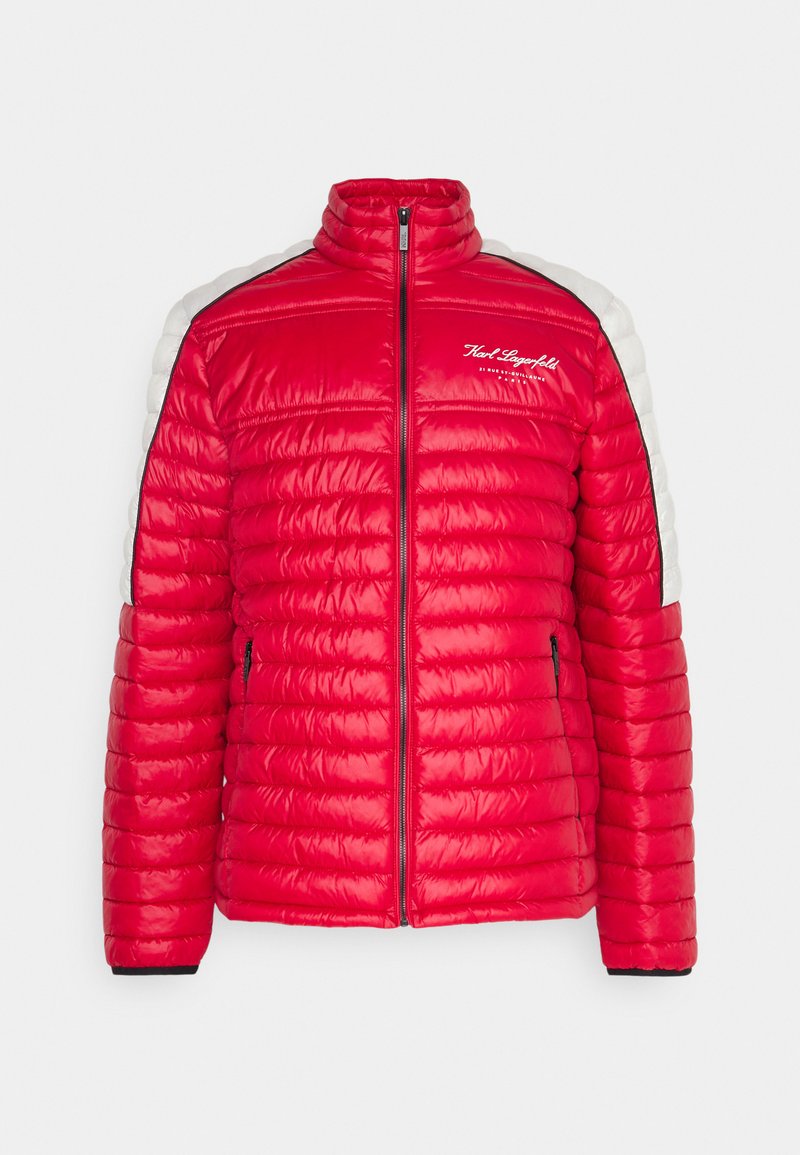 Stay warm and stylish this autumn/winter season with the Karl Lagerfeld Casual Man's Jacket in vibrant red. This versatile mid-season jacket is perfect for adding a pop of color to any outfit. Featuring a modern design and high-quality materials, it's the perfect choice for the fashion-forward man on the go. Upgrade your casual wardrobe with this must-have piece from Karl Lagerfeld.