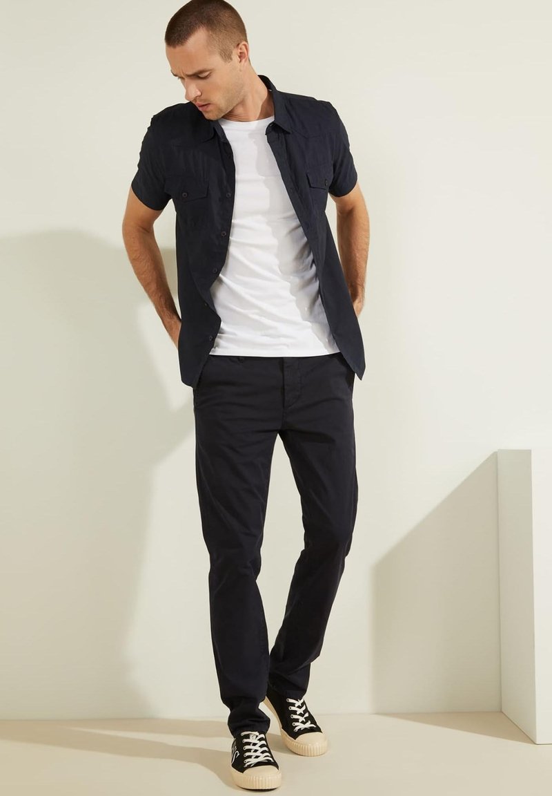 Elevate your style with these casual Guess pants for men, perfect for the Spring/Summer season. The vibrant blue color adds a pop of personality to any outfit. Made for comfort and fashion-forward looks, these pants are ideal for a day out or a casual evening. Stay cool and stylish in these versatile trousers.