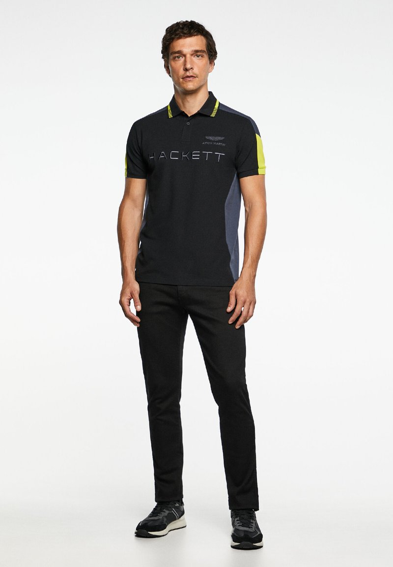 Introducing the Hackett Aston Martin Racing Men's Casual/Elegant Polo in sleek Black. This stylish polo is perfect for the Spring/Summer season, featuring a modern design with a touch of sophistication. Made for the man of style, this versatile piece effortlessly combines comfort and fashion. Elevate your wardrobe with this must-have staple from Hackett Aston Martin Racing.