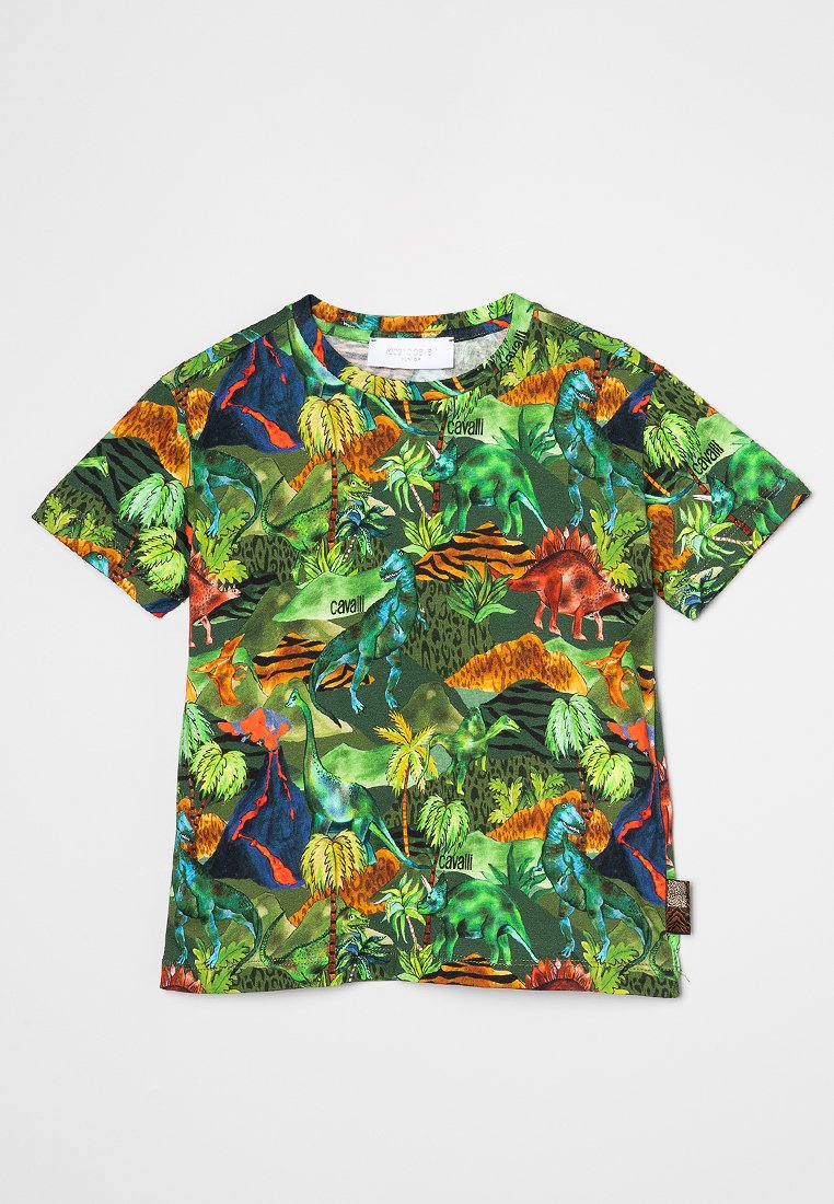 Elevate your casual look with this Roberto Cavalli Junior T-shirt for the man of style. Featuring a vibrant multi-color design, this tee is perfect for the Spring/Summer season. Made for comfort and style, this printed T-shirt is a must-have for any fashion-forward wardrobe. Stand out in the crowd with this trendy and versatile piece.