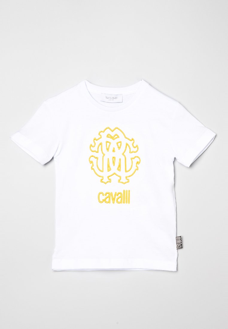 Get ready to elevate your casual style with this Roberto Cavalli Junior T-shirt for Men. Perfect for the Spring/Summer season, this white tee features a stylish print that adds a touch of sophistication to any outfit. Made for the modern man of style, this shirt is a must-have for your wardrobe. Upgrade your look effortlessly with this versatile piece.
