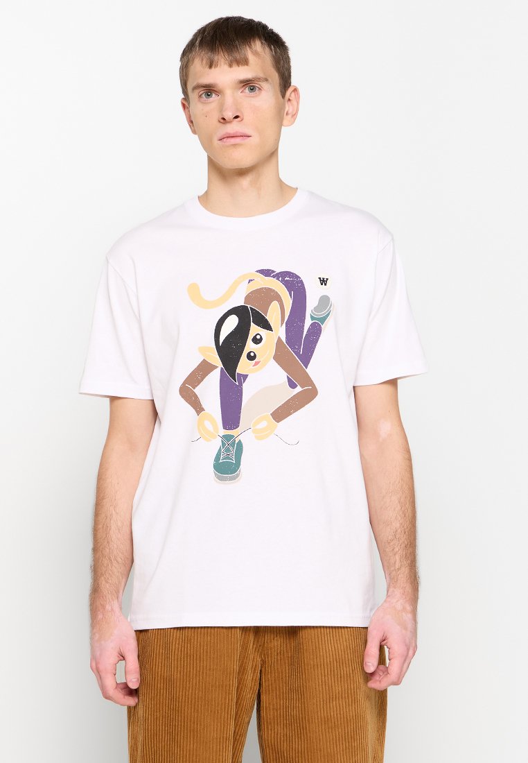 Elevate your casual style with this Wood Wood T-shirt for Men of style Casual. Perfect for the Spring/Summer season, this white tee features a stylish print that adds a trendy touch to any outfit. Made from high-quality material, it provides both comfort and style. A must-have addition to your wardrobe for the warm weather ahead.
