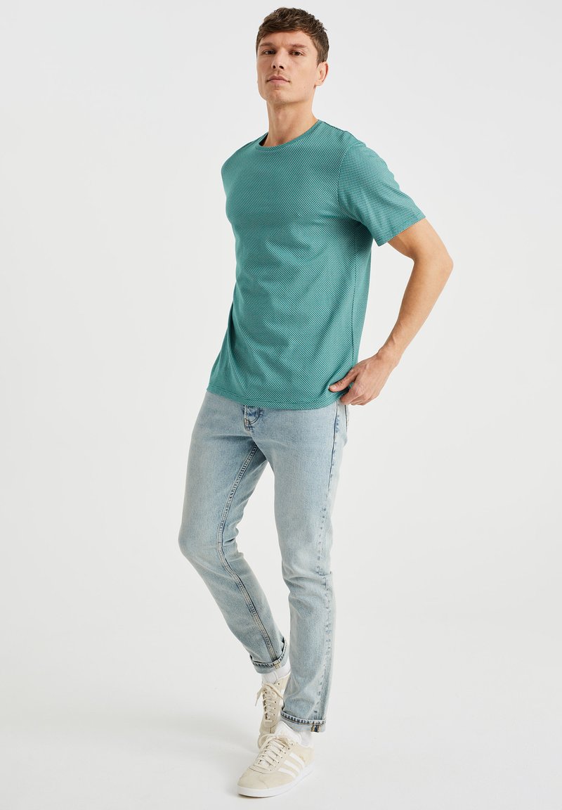 Elevate your casual look with this stylish green T-shirt from WE Fashion. Perfect for the warmer months of Spring and Summer, this T-shirt features a trendy print that adds a pop of personality to your outfit. Made for the man of style who values comfort and fashion, this T-shirt is a must-have addition to your wardrobe. Stay cool and fashionable with this effortlessly chic piece.