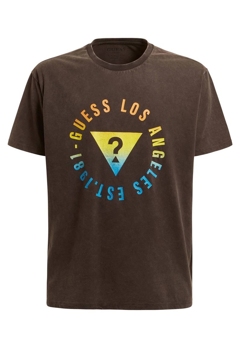 Stay stylish and cool in this Guess Men's Casual T-shirt for the Spring/Summer season. The classic brown color adds a touch of sophistication to any outfit, while the trendy print makes a fashionable statement. Perfect for a day out with friends or a casual date night, this t-shirt combines comfort and style effortlessly. Upgrade your wardrobe with this versatile and on-trend piece.
