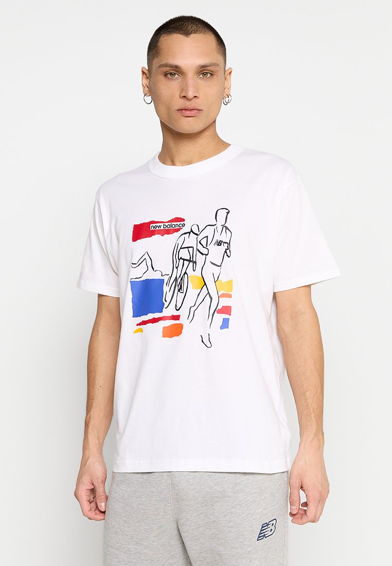 Introducing the New Balance Man of Style Casual T-shirt, perfect for the Spring/Summer season. This stylish white tee features a trendy print, adding a touch of flair to any outfit. Made from high-quality material, this shirt is comfortable and versatile for all-day wear. Elevate your casual look with this must-have wardrobe essential.