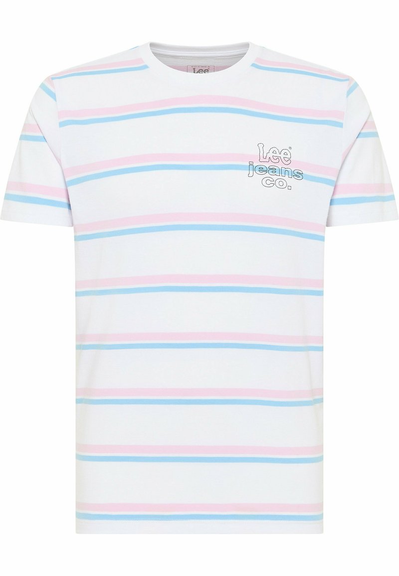 Stay cool and stylish in this white Lee T-shirt for the Man of Style Casual collection. Perfect for the Spring/Summer season, this tee features a trendy print for a modern twist. Made from high-quality materials, this shirt is a must-have for any fashion-forward man's wardrobe. Get ready to stand out in this effortlessly chic T-shirt.