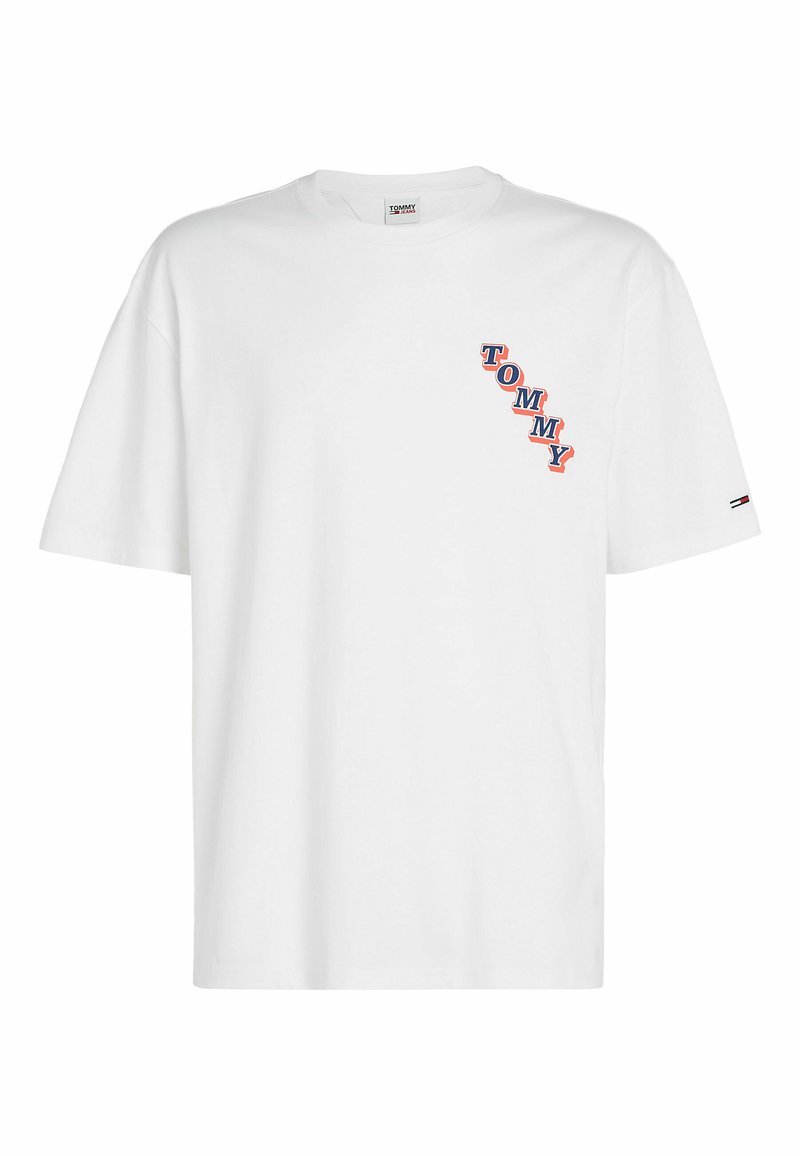 Elevate your casual style with this Tommy Jeans T-shirt for Men. Perfect for the Spring/Summer season, this white T-shirt features a trendy print that adds a touch of personality to your outfit. Made from high-quality materials, this shirt is both comfortable and stylish. Stay cool and fashionable all season long with this must-have addition to your wardrobe.