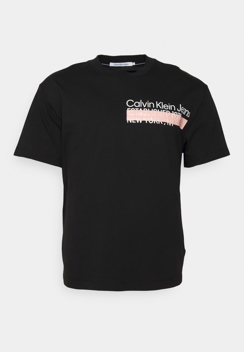 Elevate your casual look with this Calvin Klein Jeans Plus T-shirt for the style-conscious man. Crafted in a classic black hue, this tee is perfect for the warmer months of Spring and Summer. The T-shirt features a stylish print, adding a touch of personality to your outfit. Stay cool and comfortable while making a fashion statement in this easy-to-wear staple.