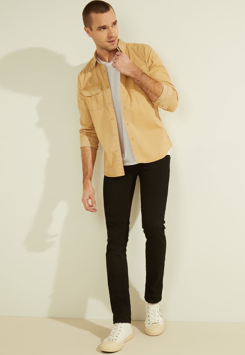 Introducing the Guess Beige Casual/Elegant Men's Shirt, perfect for the Spring/Summer season. This versatile piece combines style and comfort, making it a must-have for any fashion-conscious man. Whether you're dressing up for a special occasion or keeping it casual for a day out, this shirt has got you covered. Elevate your wardrobe with this timeless beige shirt from Guess.
