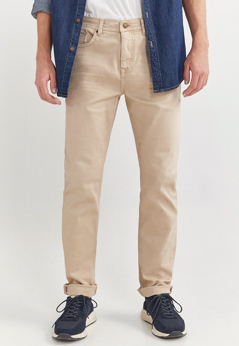 Stay stylish and comfortable in these Casual Slim Fit Pants for Men from the brand Springfield. Perfect for the Autumn/Winter season, this beige-colored jeans are versatile and easy to pair with any outfit. Whether you're running errands or meeting friends for coffee, these pants will keep you looking sharp. Elevate your wardrobe with these classic and on-trend slim fit pants.