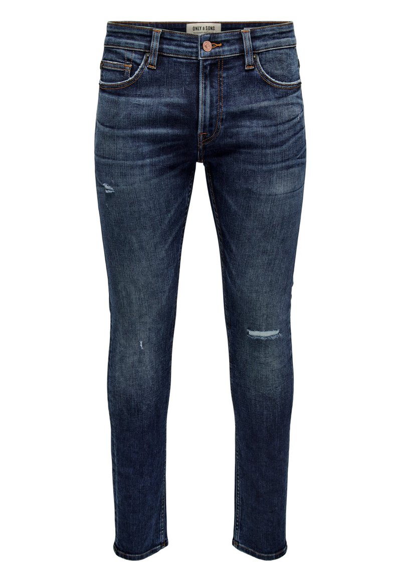 Stay stylish yet comfortable in these casual slim fit jeans from Only & Sons, perfect for the autumn/winter season. Crafted in a classic blue hue, these pants are versatile for any occasion. Elevate your wardrobe with these timeless essentials that will keep you looking sharp all season long. Complete your look with a cozy sweater or a sleek jacket for a polished aesthetic.