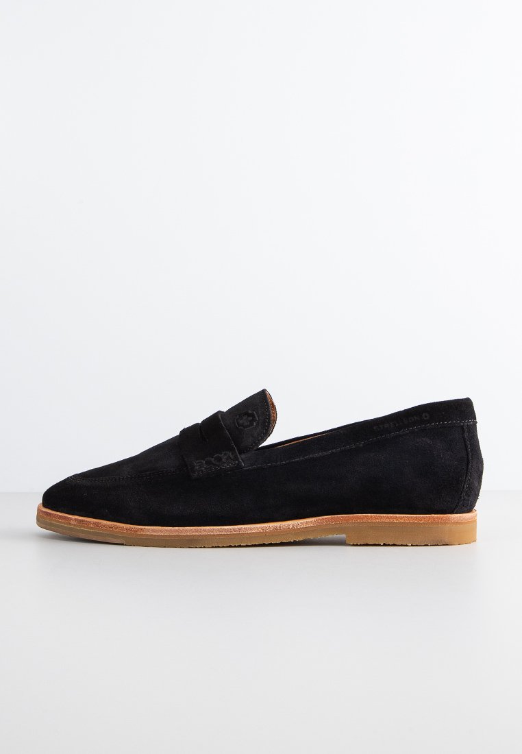 Elevate your casual look this Spring/Summer with Strellson's slip-on shoes for men. These stylish black shoes are perfect for everyday wear, adding a touch of sophistication to any outfit. The slip-on design makes them convenient for on-the-go style. Step out in comfort and style with these must-have shoes.