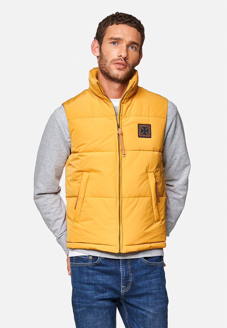 Introducing the Stones Casual/Elegant Yellow Sleeveless Jacket for men, perfect for the Spring/Summer season. This versatile piece adds a pop of color to any outfit, whether dressed up or down. Made with high-quality materials and featuring a contemporary design, the smanicato from Stones is a must-have for the modern man of style. Elevate your wardrobe with this vibrant and fashionable statement piece.