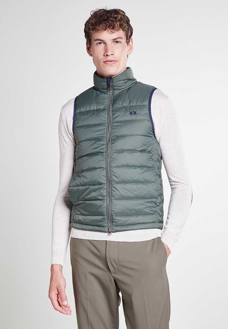 Stay cool and stylish this Spring/Summer with the LA MARTINA Casual/Elegant Man's Green Vest. Perfect for layering over a t-shirt or button-down shirt, this versatile piece adds a touch of sophistication to any outfit. Whether you're heading to a barbecue or a cocktail party, the smanicato vest is a must-have for every fashion-forward man. Upgrade your wardrobe with this timeless and on-trend garment.