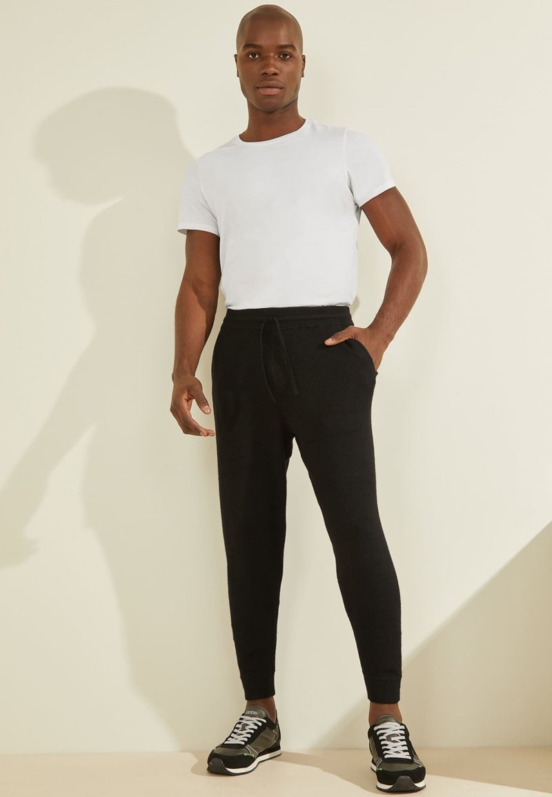 Stay comfortable and stylish this Spring/Summer season with these casual black pants from Guess. Designed for the modern man on the go, these sporty pants offer a relaxed fit and a sleek look. Whether you're running errands or hanging out with friends, these versatile pants will keep you looking sharp. Add them to your wardrobe for effortless, everyday style.