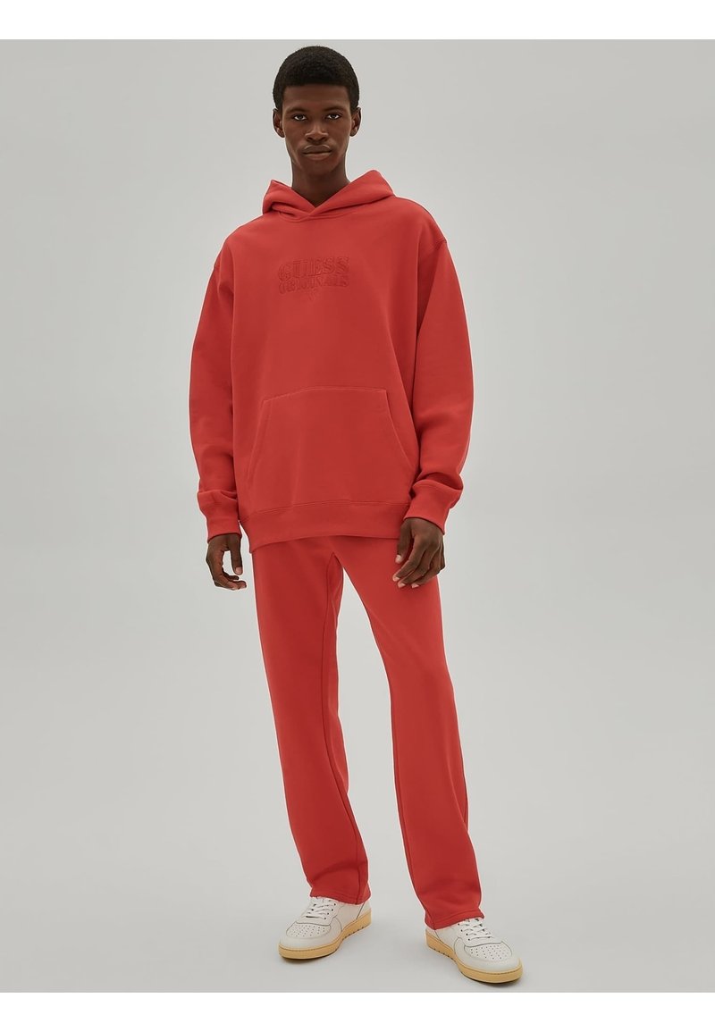 Elevate your Spring/Summer wardrobe with these casual men's pants from Guess. Crafted in vibrant red, these sporty trousers are perfect for adding a pop of color to your outfit. Made for comfort and style, these pants are versatile for any casual occasion. Stay cool and stylish all season long in these Guess casual pants.