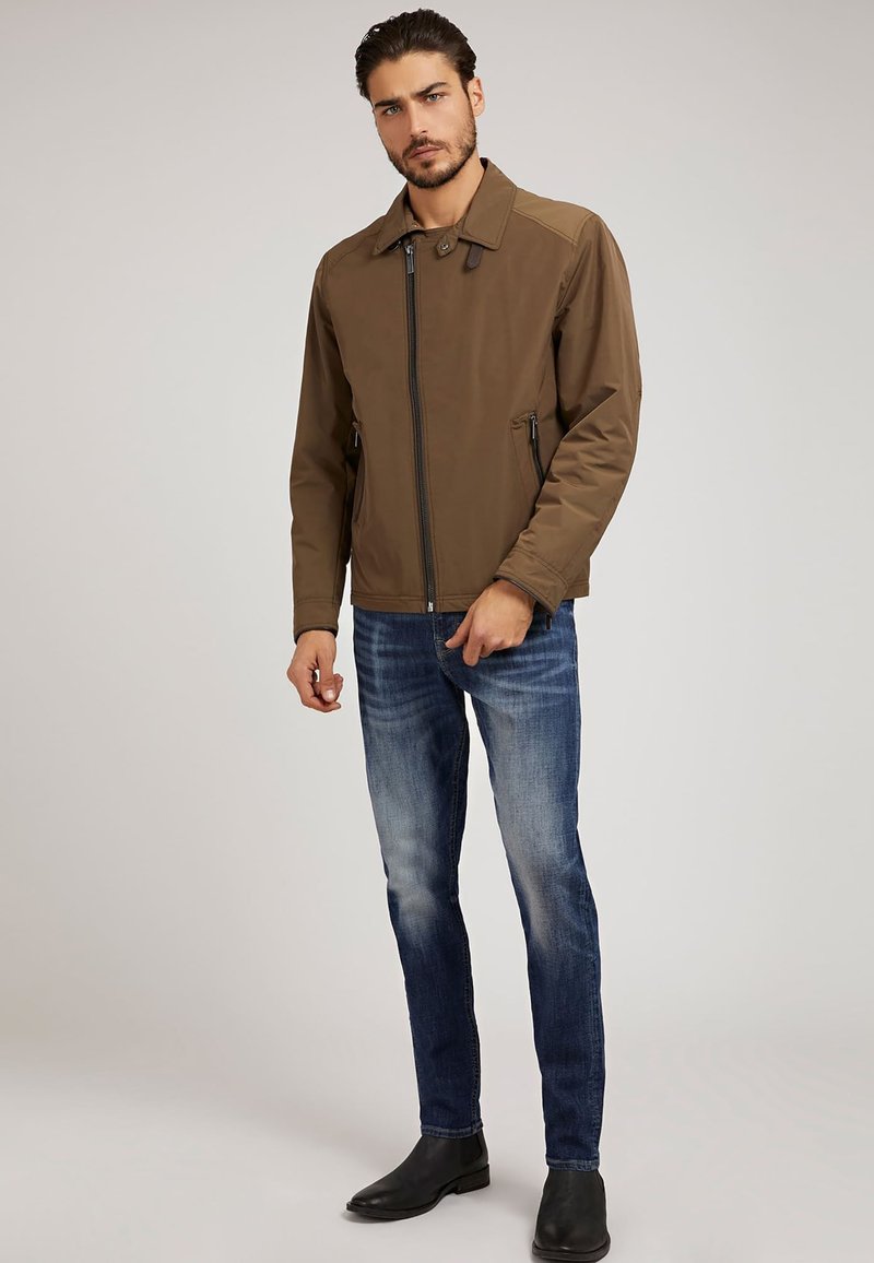 Stay stylish and cozy this Autumn/Winter season with the Guess Casual Men's Jacket in a rich brown color. Perfect for layering over your favorite sweaters, this versatile mid-season jacket is a must-have for any fashion-forward man. From weekend outings to casual Fridays, this Guess jacket adds a touch of sophistication to any outfit. Stay warm and on-trend with this essential wardrobe piece.