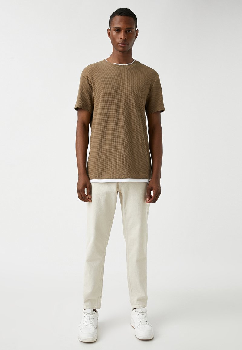 Stay cool and stylish this Spring/Summer with our Koton Man of Style Casual T-shirt in a sleek Beige hue. Made for effortless everyday wear, this Basic T-shirt is perfect for pairing with your favorite jeans or shorts. Elevate your casual look with this versatile wardrobe staple that offers both comfort and sophistication. Make a statement with Koton's timeless and trendy Beige T-shirt.