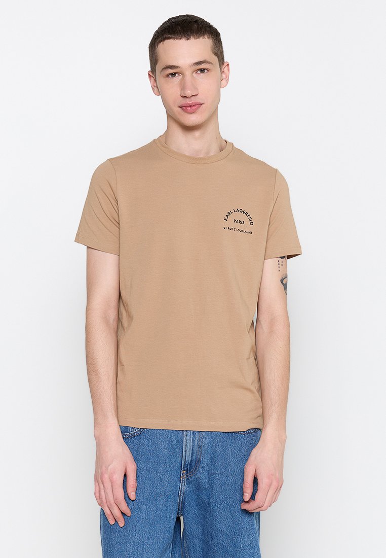 Stay stylish this Spring/Summer with the Karl Lagerfeld Man of Style Casual T-shirt in a fashionable Beige hue. This versatile and comfortable T-shirt is perfect for effortlessly elevating any casual look. Made with high-quality materials, this Basic T-shirt is a must-have staple for any wardrobe. Upgrade your everyday style with this timeless piece from Karl Lagerfeld.