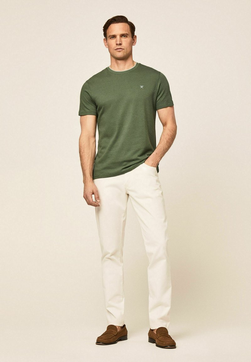Introducing the Hackett London Man of Style Casual T-Shirt in a trendy green shade, perfect for the Spring/Summer season. This basic tee is a must-have for any stylish man looking to elevate his casual wardrobe. Made from high-quality materials, this t-shirt offers both comfort and style for any occasion. Dress it up with a blazer or keep it casual with jeans for a versatile and fashionable look.