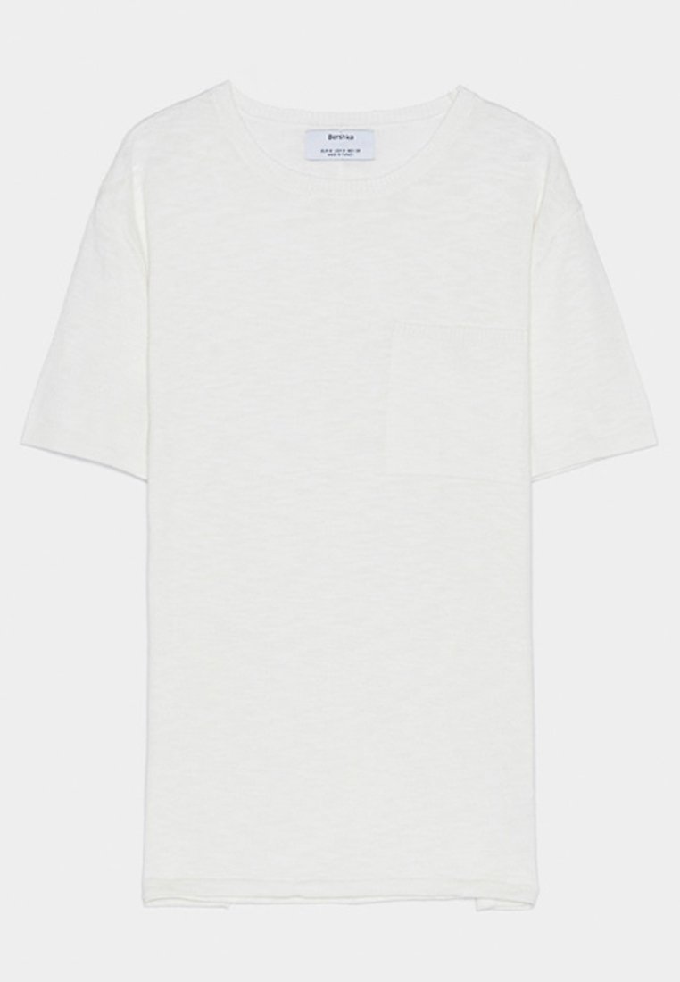 Stay cool and stylish this Spring/Summer season with the Bershka Man of Style Casual Basic T-Shirt in classic white. Made for effortless everyday wear, this timeless piece features a comfortable fit and versatile design. Perfect for pairing with your favorite jeans or shorts, this T-shirt is a must-have for any modern man's wardrobe. Elevate your casual look with this essential piece from Bershka.