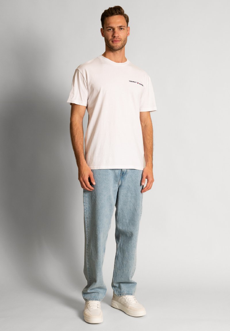 Elevate your casual style with the Tommy Jeans "Basic" T-shirt for Men. This white tee is perfect for the Spring/Summer season, offering a clean and versatile look. Made with high-quality materials, this shirt is both comfortable and stylish, making it a must-have for any man of style. Upgrade your wardrobe with this timeless piece from Tommy Jeans.