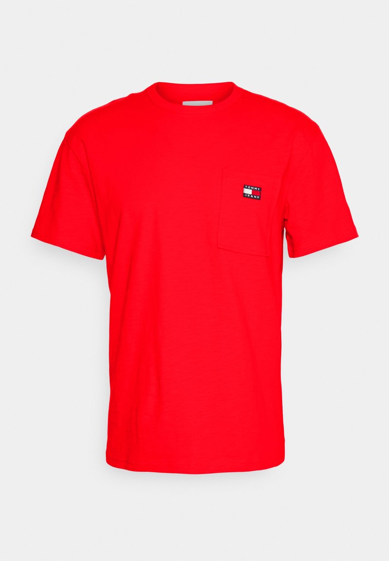 Upgrade your casual look with this stylish Tommy Jeans "Basic" T-shirt for men. In a vibrant red hue, this shirt is perfect for the Spring/Summer season. Made for the man of style who values comfort and fashion. Elevate your wardrobe with this classic piece.