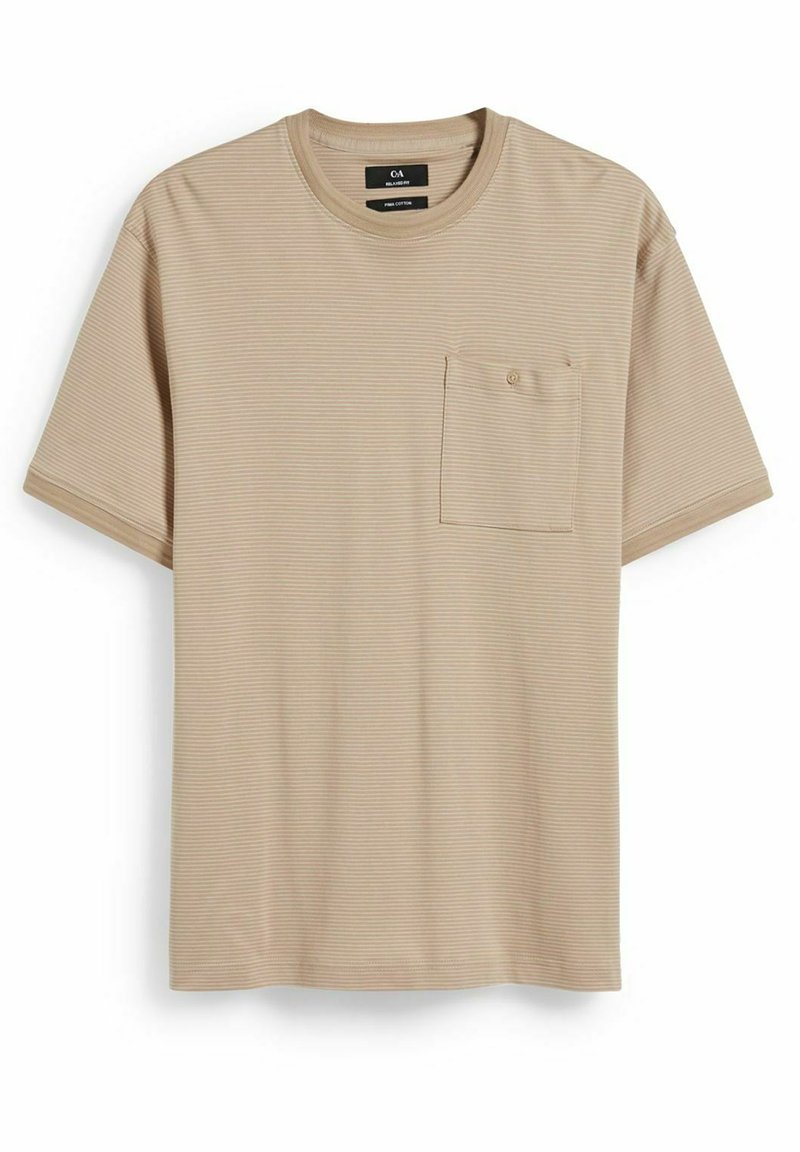 Get ready for the Spring/Summer season with this stylish beige T-shirt from C&A's Man of Style Casual collection. Featuring a trendy print, this shirt is perfect for a casual yet polished look. Made with high-quality materials, it's comfortable and versatile for any occasion. Elevate your wardrobe with this must-have piece for the fashion-forward man.