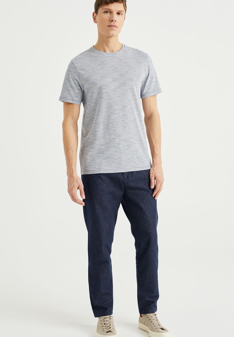 Stay cool and stylish this Spring/Summer with the WE Fashion Man of Style Casual T-shirt in Blue. Perfect for any casual outing, this t-shirt features a trendy print design that adds a touch of personality to your look. Made with high-quality materials, this t-shirt ensures both comfort and style all season long. Upgrade your wardrobe with this must-have piece from WE Fashion.